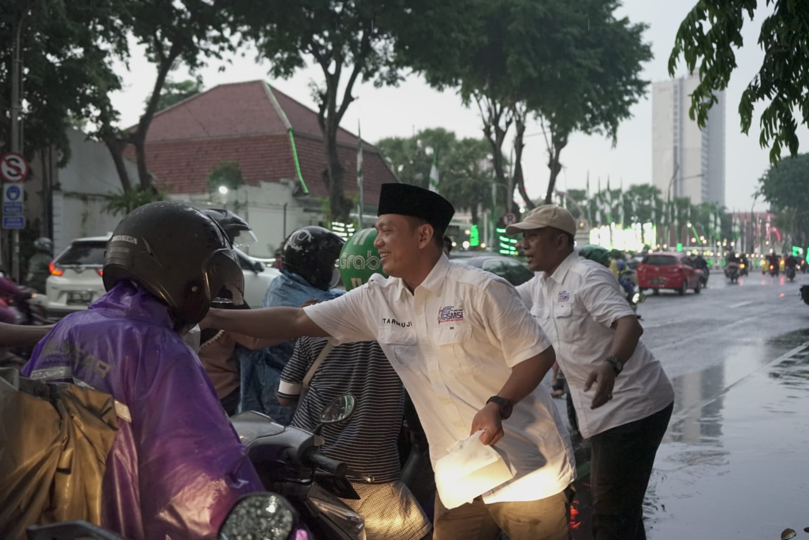SURABAYA (Blokjatim.com) – Merayakan keberkahan bulan suci Ramadhan, Serikat Media Siber Indonesia (SMSI) Jawa Timur bagikan takjil untuk pengguna jalan menjelang buka puasa.