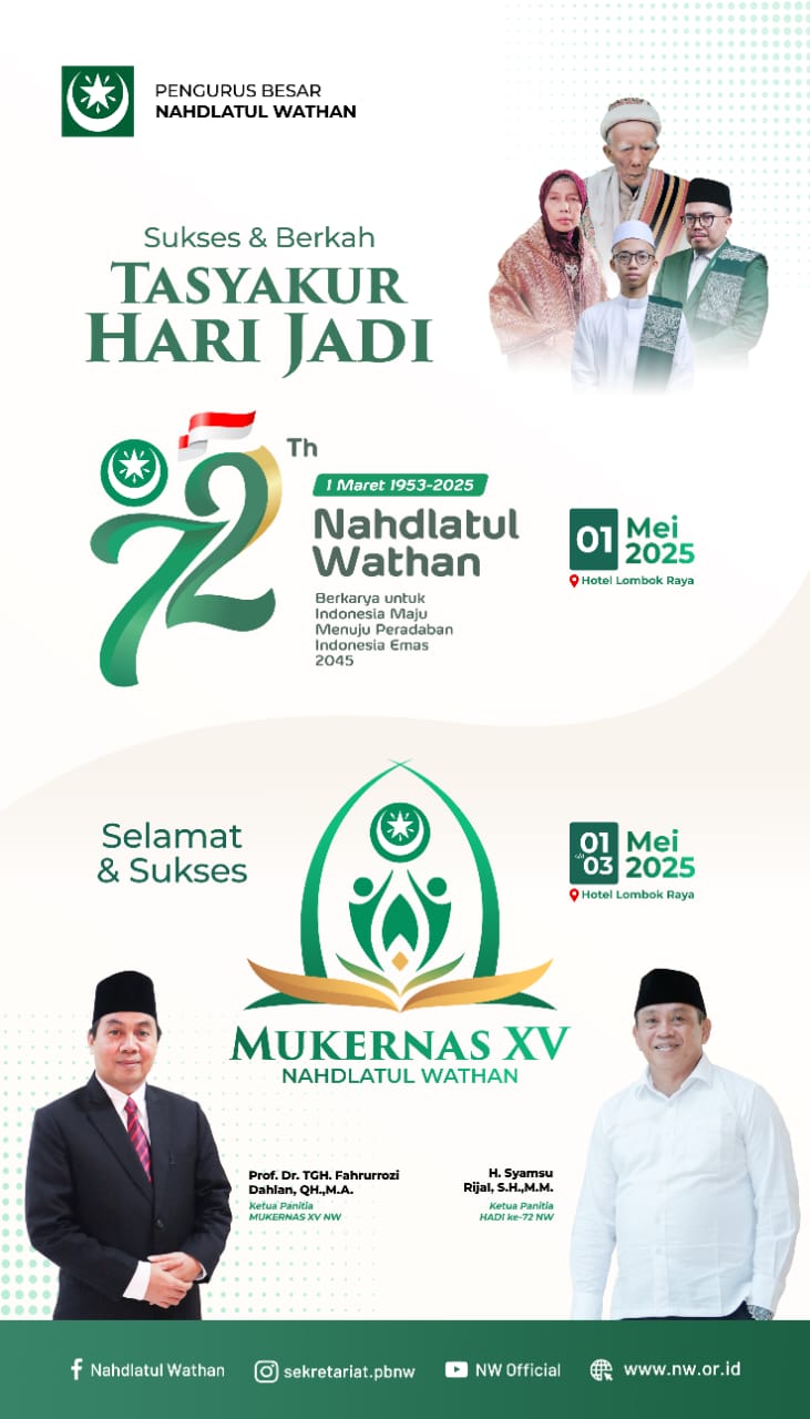 Selamat ber-HADI NW ke-72, dan MUKERNAS XV NW. Moga NW makin jaya daiman abadan.(*)