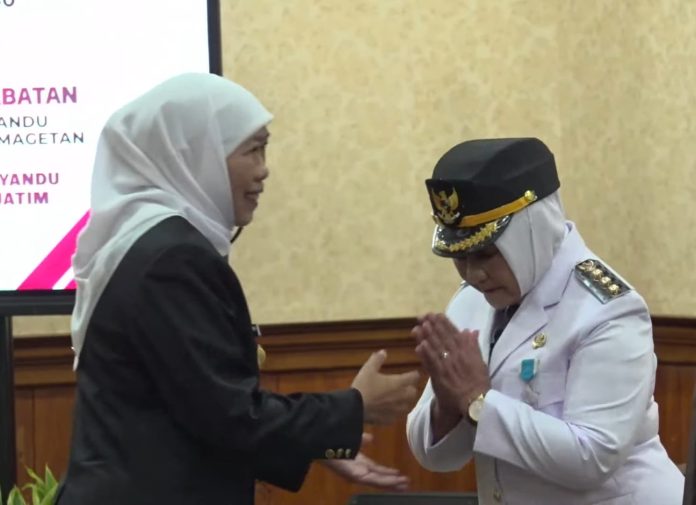 MAGETAN (Blokjatim.com) – Setelah menunggu sekian lama, akhirnya Gubernur Jawa Timur Khofifah Indar Parawansa secara resmi melantik Nanik Endang Rusminiarti dan Suyatni Priasmoro sebagai Bupati dan Wakil Bupati Magetan periode 2025-2030, Jumat (23/5/2025).