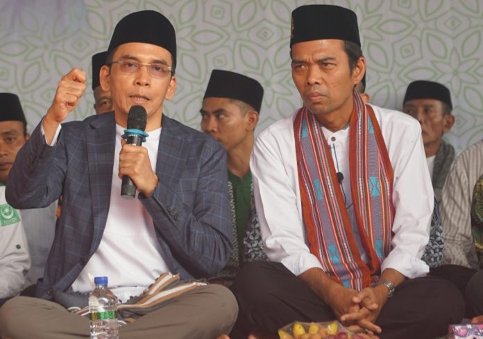 Pertemuan Dua Sahabat, TGB Zainul Majdi dan Ustad Abdul Somad Hadiri Tabligh Akbar di Lombok Barat