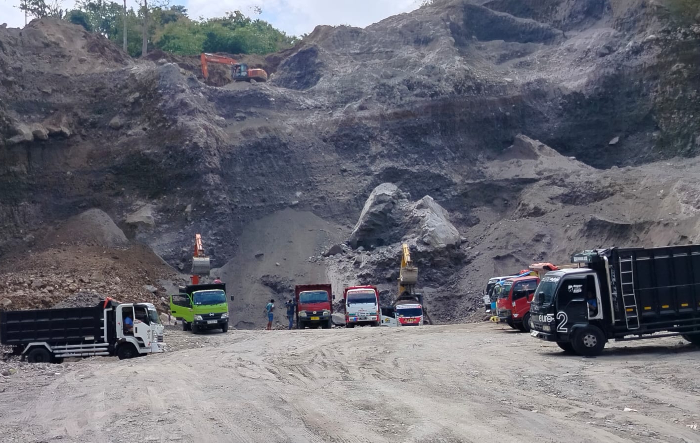 Pantauan awak media di lapangan, terlihat jelas bahwa proses pertambangan kembali berlangsung dengan adanya truk-truk muatan dan juga alat berat yang beroperasi di lokasi.