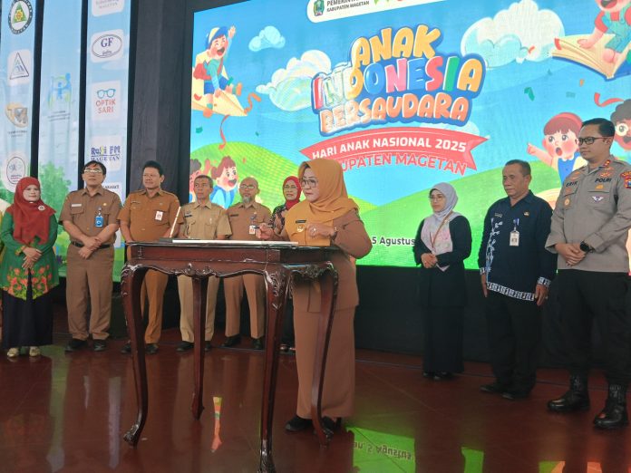MAGETAN (Blokjatim.com) – Momen memperingati Hari Anak Nasional (HAN ) tahun 2025, Pemkab Magetan melalui Dinas Pengendalian Penduduk, Keluarga Berencana, Pemberdayaan Perempuan dan Perlindungan Anak (PPKBPP & PA) Kabupaten Magetan menggelar Memorandum of Understanding (MoU) dengan berbagai pihak, Selasa (5/8/2025).