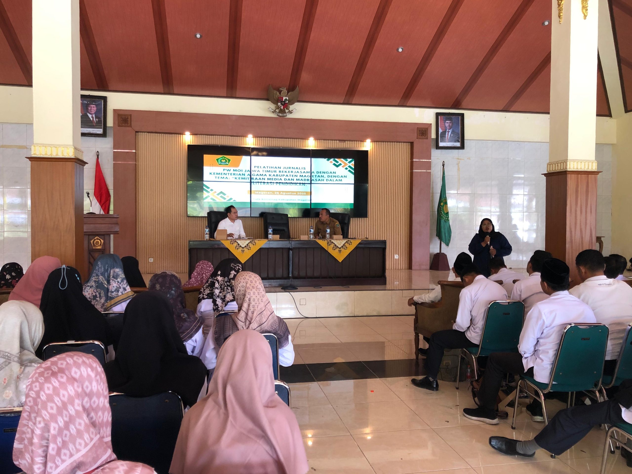 MAGETAN (Blokjatim.com) – Kolaborasi dengan Kementerian Agama (Kemenag) Kabupaten Magetan, Persatuan Wartawan Media Online Indonesia (PW MOI) Jawa Timur menggelar Pelatihan Jurnalistik, Selasa (27/8/2025).