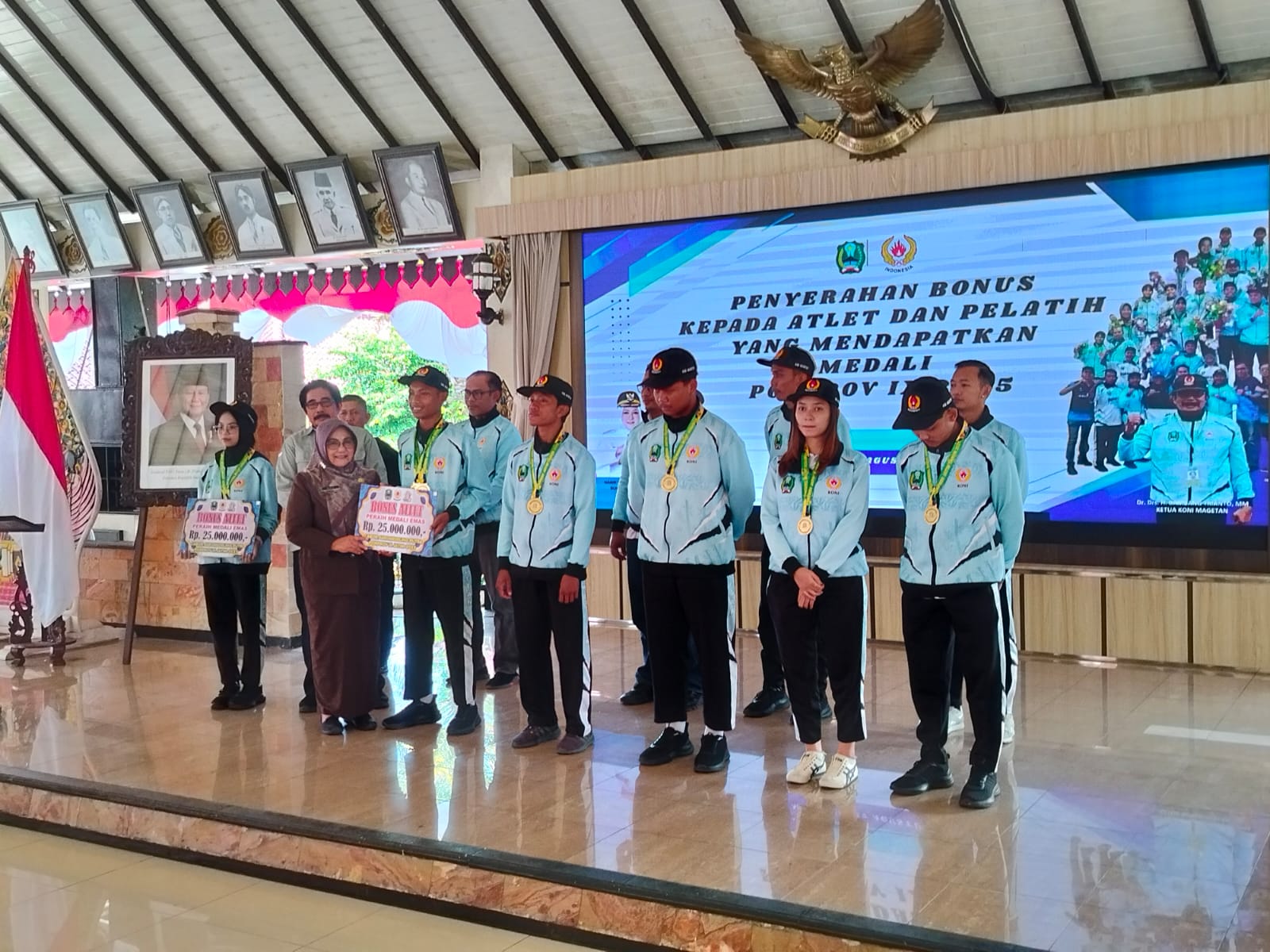 Pada kesempatan tersebut, Pemkab Magetan juga menyerahkan bonus kepada para atlet dan pelatih yang berhasil meraih medali emas, perak, maupun perunggu sebagai bentuk penghargaan atas kerja keras dan dedikasi mereka.(niel/red)