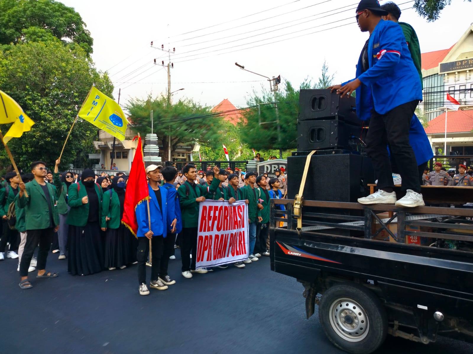 Massa aksi menyoroti lemahnya keberpihakan wakil rakyat di tengah gejolak nasional. Ada empat poin utama yang disampaikan: