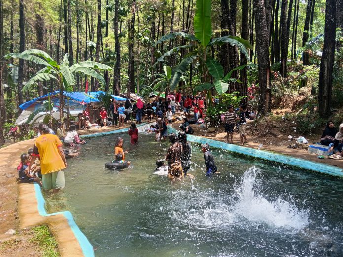 Dinginnya air sumber mata air asli, menjadi sensasi tersendiri bagi anak-anak yang asik berenang dan bermain air. Dilokasi kolam, ada juga penyewaan ban, jadi anak-anak yang belum bisa berenang bisa belajar berenang memakai ban.