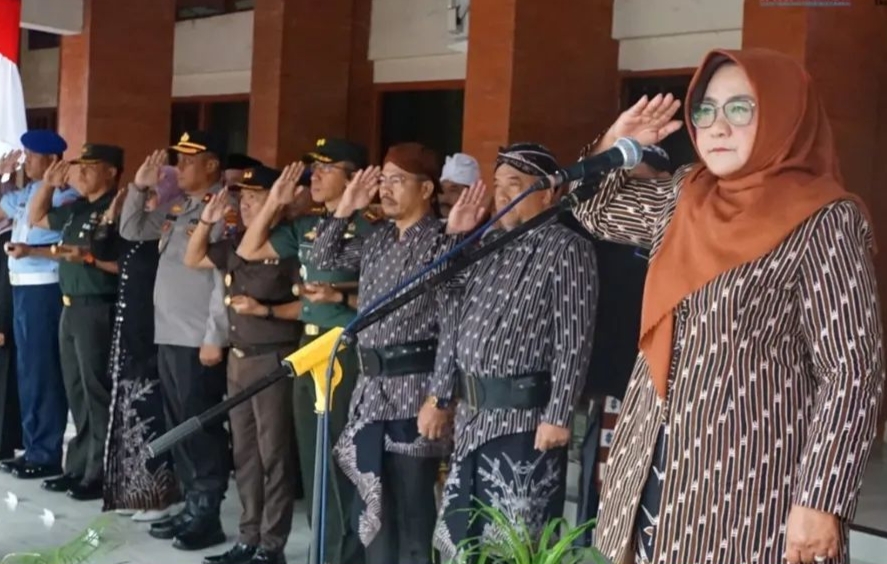 Dengan penuh khidmat, Bupati Nanik Sumantri menyampaikan sambutan Menpora yang mengajak generasi muda menyalakan semangat persatuan, kerja keras, dan kejujuran di tengah tantangan zaman yang berat.