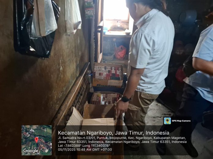 Kecamatan Ngariboyo, ditemukan sebanyak lebih kurang 200 bungkus rokok ilegal tanpa dilekati pita cukai.