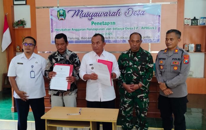 MAGETAN (BLOKJATIM.COM) – Pemerintah Desa Terung yang berada di Kecamatan Panekan, Kabupaten Magetan, baru saja menyelesaikan tahapan penting dalam pengelolaan keuangan desa. Pada hari Rabu (19/11/2025), Desa yang terkenal dengan produk tempenya ini menggelar Musyawarah Desa (Musdes) untuk menetapkan Perubahan Anggaran Pendapatan dan Belanja Desa (P-APBDes) Tahun 2025.