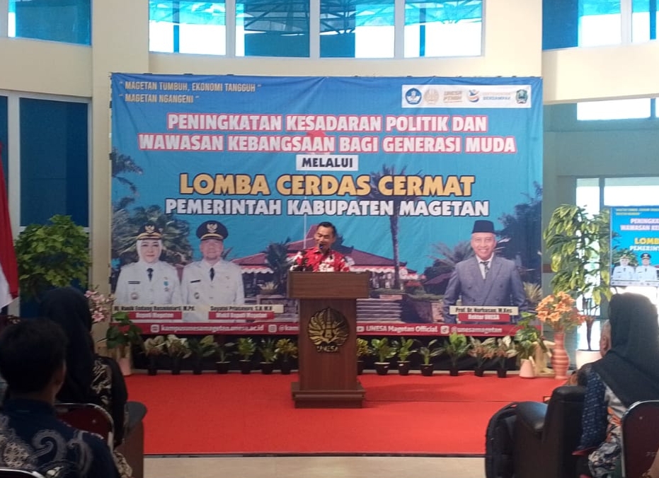 MAGETAN (Blokjatim.com) – Kampus 5 Unesa Magetan dipenuhi antusiasme ratusan pelajar pada Minggu (30/11/2025). Para siswa dari SMA, SMK, dan MA se-Kabupaten Magetan itu berkumpul untuk mengikuti Lomba Cerdas Cermat Wawasan Kebangsaan yang digelar Badan Kesbangpol Magetan.