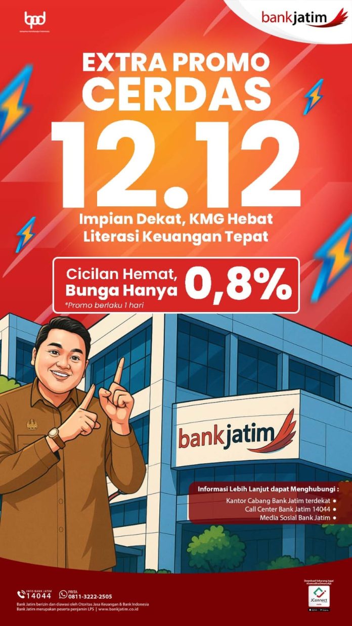 MAGETAN (BLOKJATIM.COM) – Kabar gembira bagi masyarakat yang merencanakan kebutuhan pembiayaan! Dalam langkah agresif untuk meningkatkan literasi dan inklusi keuangan, Bank Jatim meluncurkan program spesial bertajuk “Extra Promo Cerdas 12.12” yang menawarkan bunga Kredit Multiguna (KMG) super ringan.