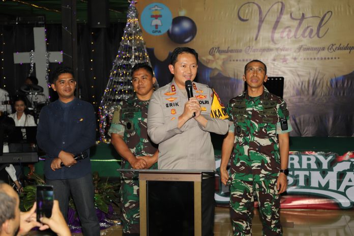 Dalam sambutannya di hadapan para jemaat, AKBP Raden Erik Bangun Prakasa menegaskan bahwa pihaknya berkomitmen penuh memberikan rasa aman tanpa celah bagi seluruh umat Kristiani yang menjalankan ibadah.