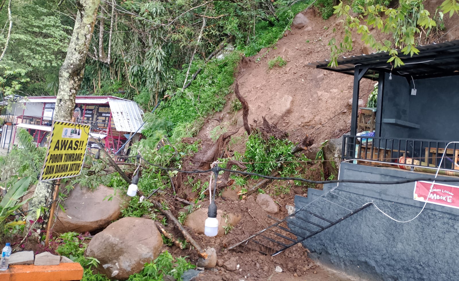 “Benar, telah terjadi longsor berupa batu dan tanah yang menutup akses jalan wisata Telaga Sarangan. Kejadian berlangsung dini hari setelah sebelumnya wilayah ini diguyur hujan deras dan angin kencang,” ujar Eka Wahyudi saat dikonfirmasi.