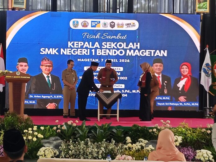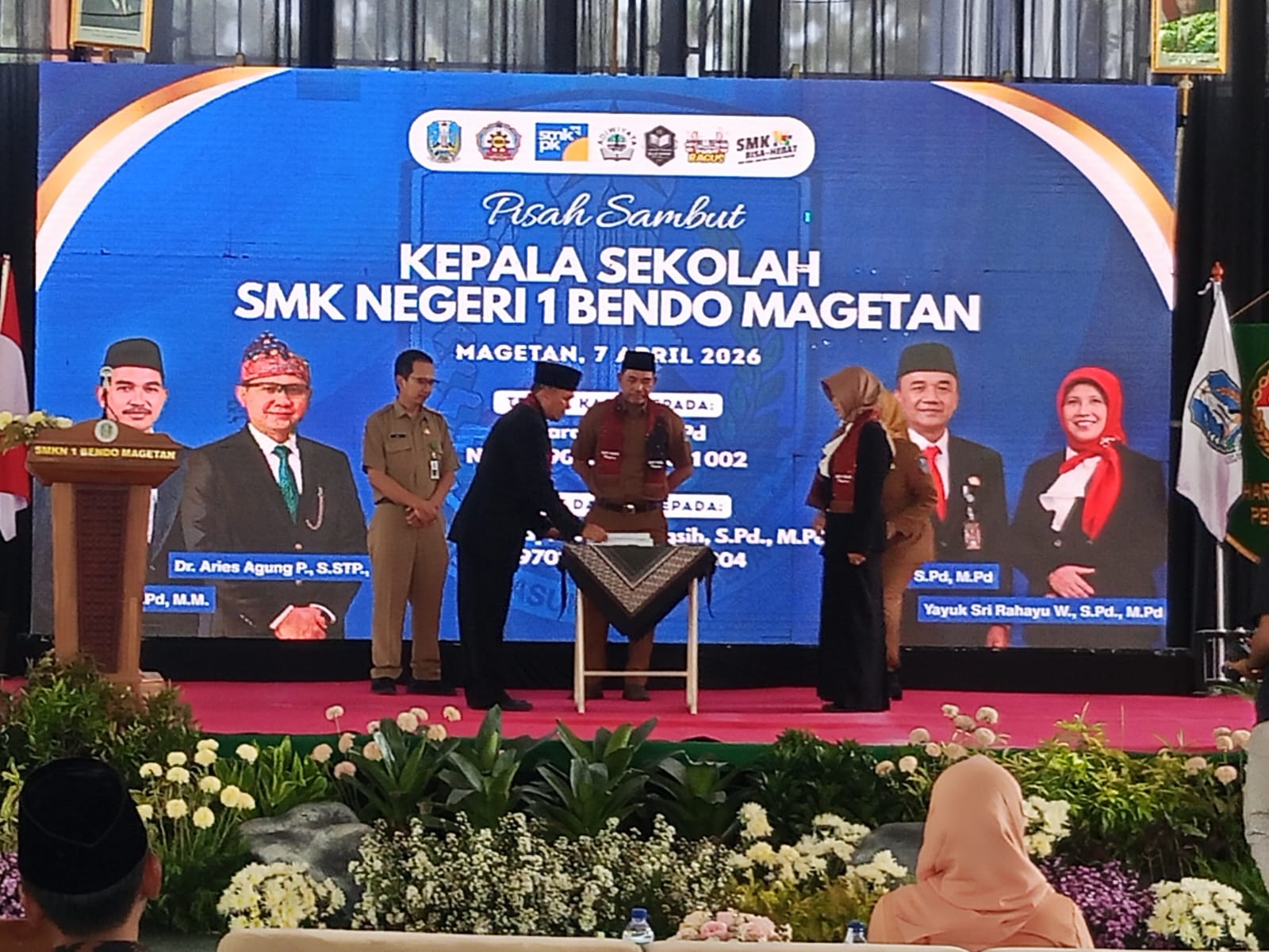 MAGETAN (BLOKJATIM.COM) – Suasana penuh kehangatan sekaligus semangat baru menyelimuti acara Pisah Sambut dan Serah Terima Jabatan (Sertijab) Kepala SMK Negeri 1 Bendo, Magetan, pada Rabu (01/04/2026). Momentum ini menandai beralihnya tongkat estafet kepemimpinan dari Pelaksana Tugas (Plt) Supardi, S.Pd, M.Pd., kepada pejabat definitif, Yayuk Sri Rahayu Wahyuningsih, S.Pd, M.Pd.