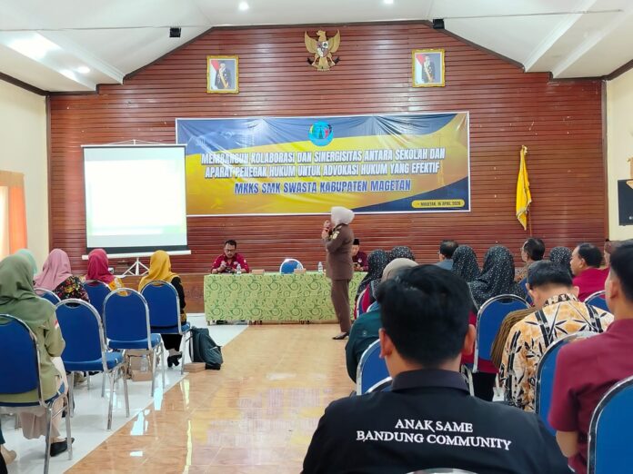 MAGETAN (BLOKJATIM.COM) – Upaya meningkatkan pemahaman hukum dalam pengelolaan sekolah terus dilakukan oleh SMK Swasta di Kabupaten Magetan. Salah satunya melalui kegiatan penyuluhan hukum yang digelar di SMK PSM 2 Takeran dengan menghadirkan narasumber dari Kejaksaan Negeri Magetan, Kamis (16/4/2026).