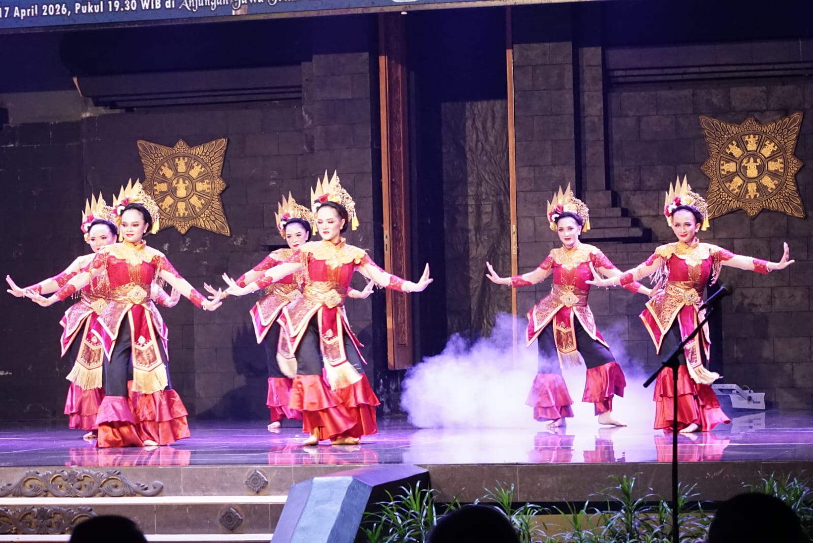 Kemeriahan malam itu dibuka dengan apik oleh Tari Puspita Lawu. Gerakan luwes para penari yang mengenakan kostum merak yang elegan menyimbolkan filosofi keteguhan hidup masyarakat lereng Gunung Lawu.